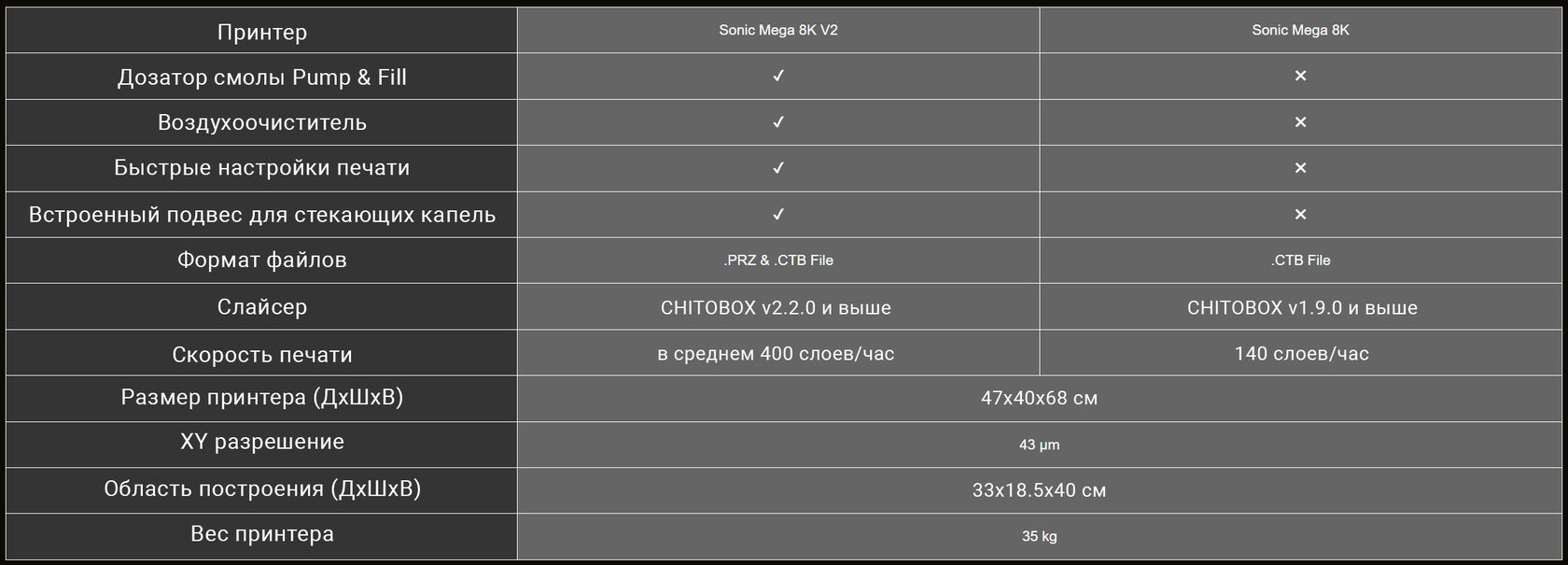 3D принтер Phrozen Sonic Mega 8K V2 превосходит все другие 3D принтеры на рынке, благодаря поразительной точности деталей в 43 мкм, создавая 3D модели, которые почти в два раза более детализированы, чем аналогичные модели на других крупномасштабных 3D принтерах.
