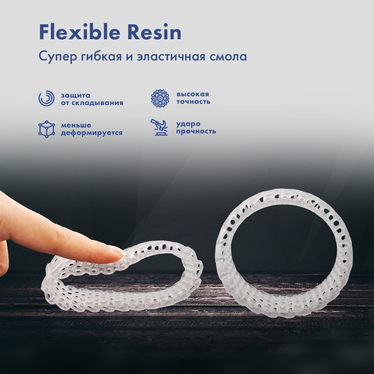супер гибкая и эластичная смола, можно сгибать или сжимать отпечатки