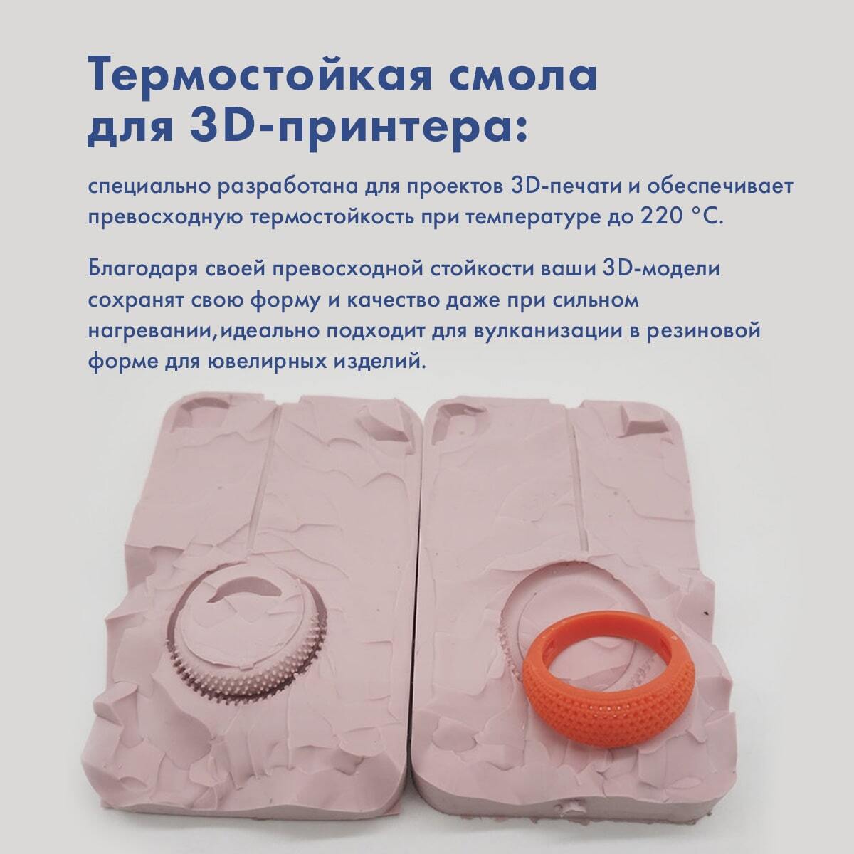 Высокотемпературная смола для 3D-принтера. Высокая термостойкость - 220 °C, не деформируется не менее 2 часов, идеально подходит для вулканизации в резиновой форме для ювелирных изделий.