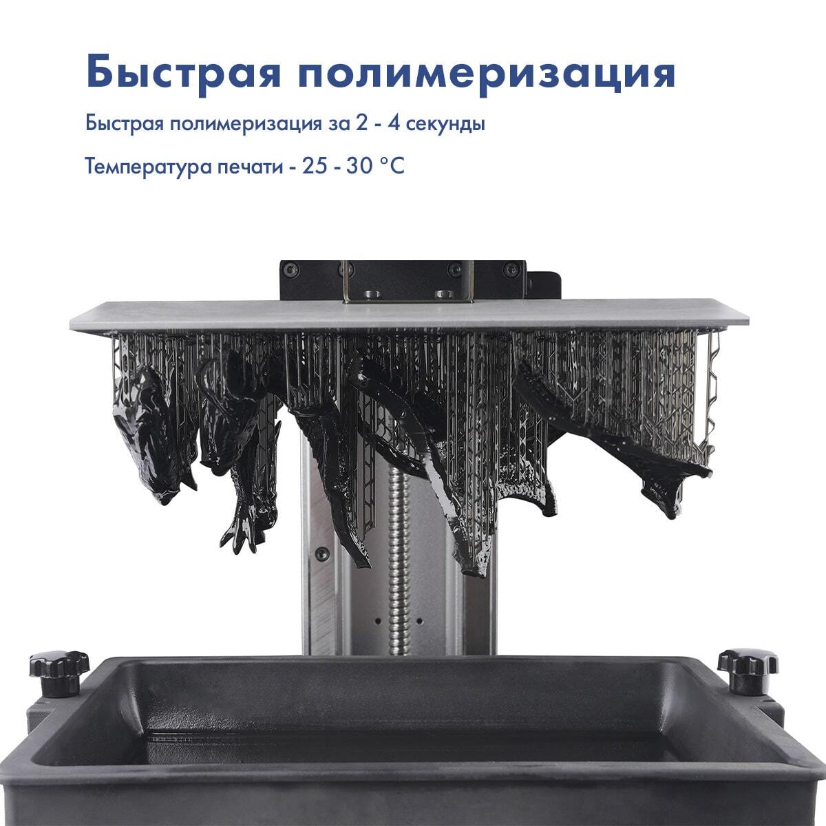 Самое главное - это низкий уровень запаха, высокая точность и лучшая цена среди всех стандартных смол.Хорошо работает на всех полимерных принтерах с длиной волны 385-405 нм.